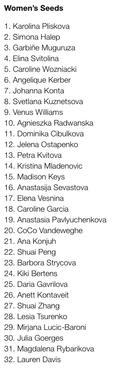 Каролина Плишкова за първи път в кариерата си е първа сложена в главната скица на Голям шлем - това се случи на US Open, откакто тя оглави международната класация по тенис по време на “Уимбълдън”. Плишкова, която е финалистка в Ню Йорк от предходната година, е четвъртата друга първа сложена във “Флъшинг Медоус” през последните осем издания на шампионата - другите са Серина Уилямс (2016, 2015, 2014, 2013), Виктория Азаренка (2012) и Каролине Вожняцки (2011, 2010).