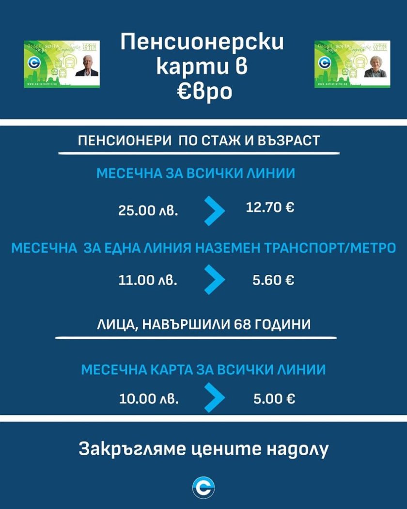 Преди дни от ЦГМ показаха новите цени за картите за градския превоз на пенсионерите по стаж и възраст, както и за хората, навършили 68 години: