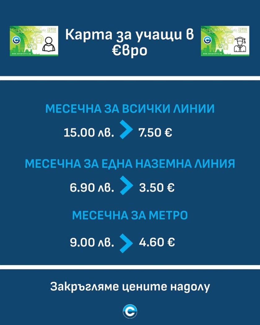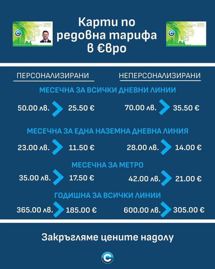 Картите за градския транспорт в София с новите цени в евро от днес