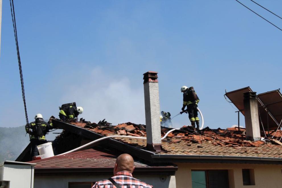 Сигналът е подаден в 15.30 ч. Горял е покривът, като огънят е тръгнал от таванско помещение.