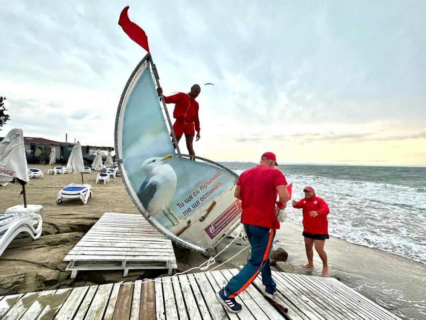" На места са издълбани ями във водата до един метър, само че не се виждат до момента в който не стъпиш в тях! Флагът е червен и това ЗАБРАНЯВА влизането в морето! Бъдете виновни и рационални и за вашия живот и за това, че поставяте в риск и спасителите поради безразсъдство, самочувствие и самоувереност! Времето на следващия ден се оправя и отново ще можете да му се насладите, по тази причина не го подценявайте през днешния ден и не рискувайте! ", показа в собствен пост Николай Димитров - концесионер на плаж Крайморие.