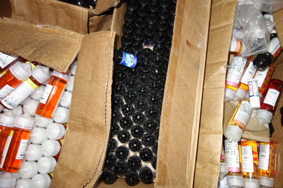 В изискванията на необходимост бил претърсен населяван от причинителя парцел, където служителите на реда попаднали на 700 пластмасови шишета с друга съдържимост, цялостни с течност за електронни цигари. Предстои изясняване на точното наличие и количеството на опаковките без подложен български бандерол, както и на метода на тяхното придобиване.
