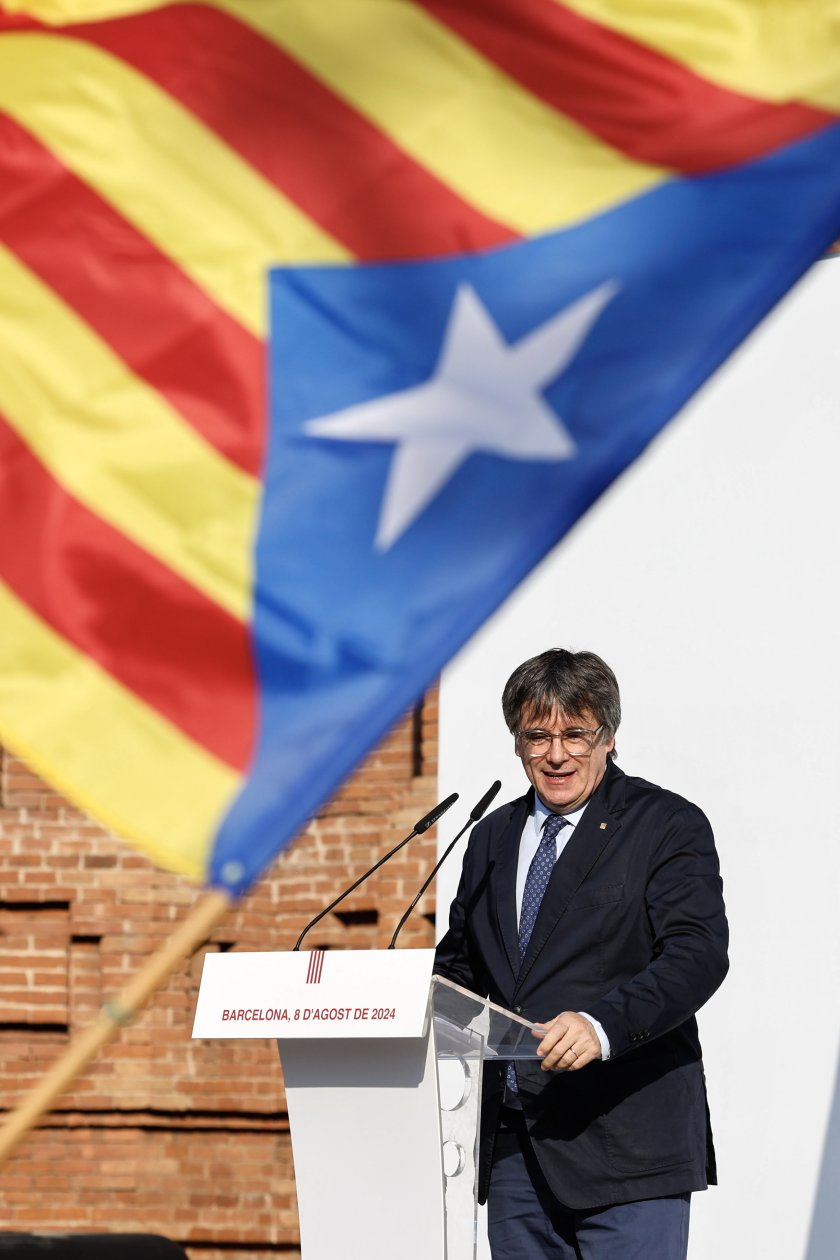 " Въпреки техните старания, макар желанието да ни наранят надълбоко, макар че видяхме репресивното им лице, през днешния ден дойдохме, с цел да им напомним, че още сме тук. Все още сме тук! И оставаме, тъй като нямаме право да се отхвърляме ", сподели Карлес Пучдемон, каталунски сепаратистки водач.