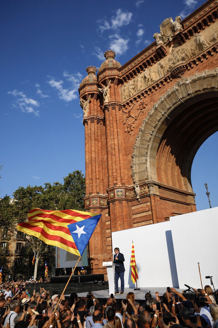 Пучдемон се качи на трибуната до Триумфалната арка наоколо от каталунския парламент, в миг когато там започваше спор за избор на нов каталунски министър председател. Ако социалистът Салвадор Иля бъде определен, Каталуния за първи път от десетилетие ще бъде ръководена от несепаратистка партия.