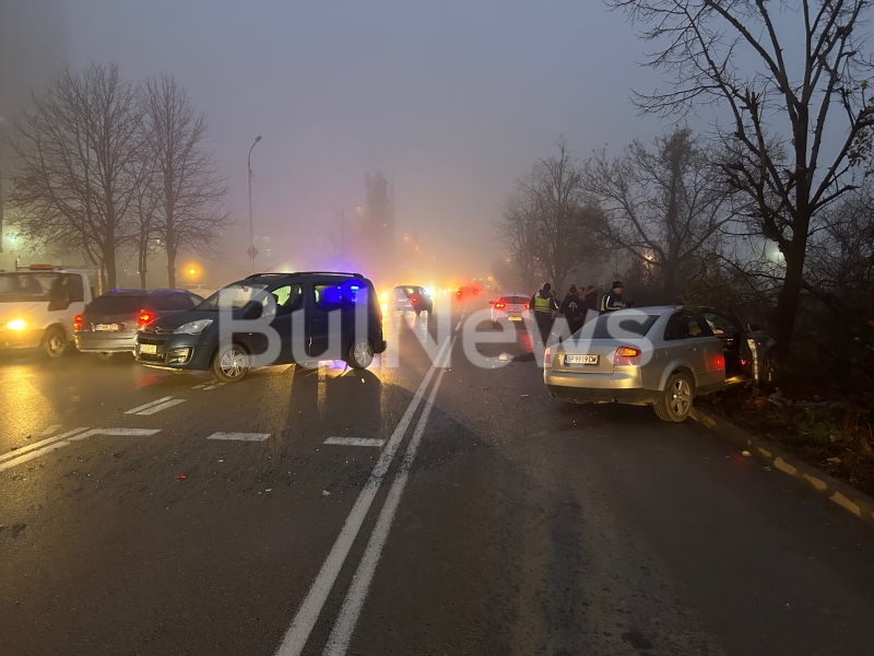 На местопроизшествието има екип на полицията. Трафикът по натоварения бул. е усложнен, защото сега се проверяват аргументите за случая и колите към момента са на платното, съобщи BulNews.bg. Ситуацията се утежнява и от дъжда и гъстата мъгла. Униформен чиновник контролира придвижването, като то се реализира в лентата за насрещно придвижване.