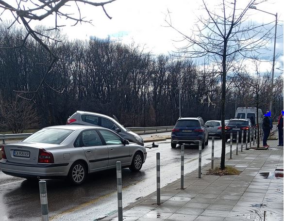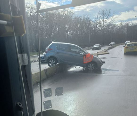 Лек автомобил се е озовал върху бетонни ограждания поради удара. Произшествието е станало в региона на болница Токуда, на бул. " Никола Вапцаров ". Движението в сектора е лимитирано.