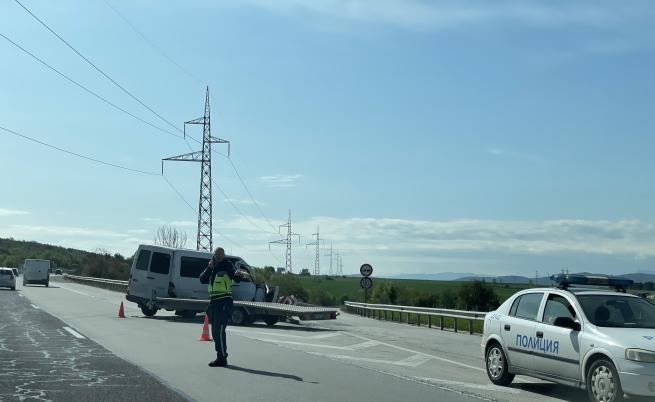 Микробус е аварирал на 34-ия км на автомагистралата.