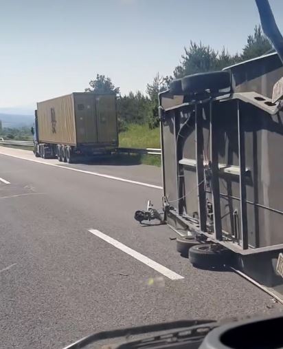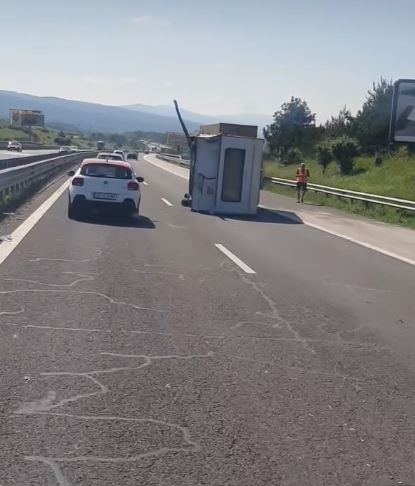 Каравана се е обънала странично след верижен конфликт с няколко транспортни средства в региона на 25 километър в посока Бургас.