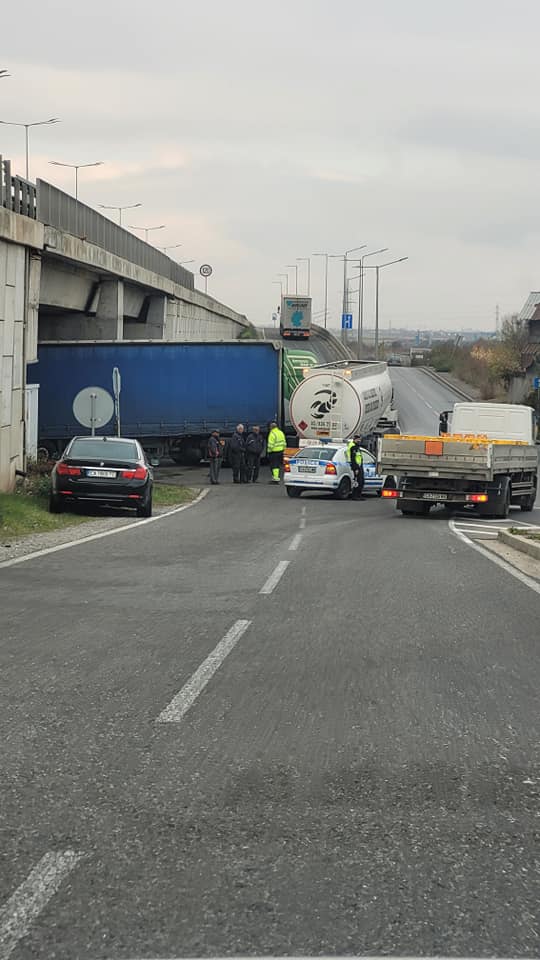 ТИР и цистерна се блъснаха в София, разлята е нафта СНИМКА