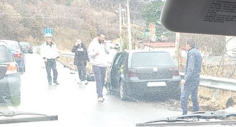 Лек автомобил " БМВ "   е изхвърчал в канавката, а " Фолксваген " се е блъснал в мантинелата.