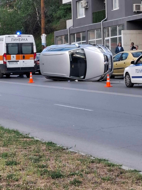 Катастрофа в Благоевград, преобърна се автомобил СНИМКИ