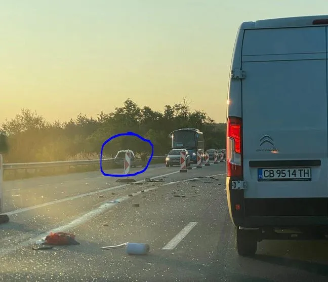 Кола самокатастрофира на АМ Тракия край София СНИМКИ