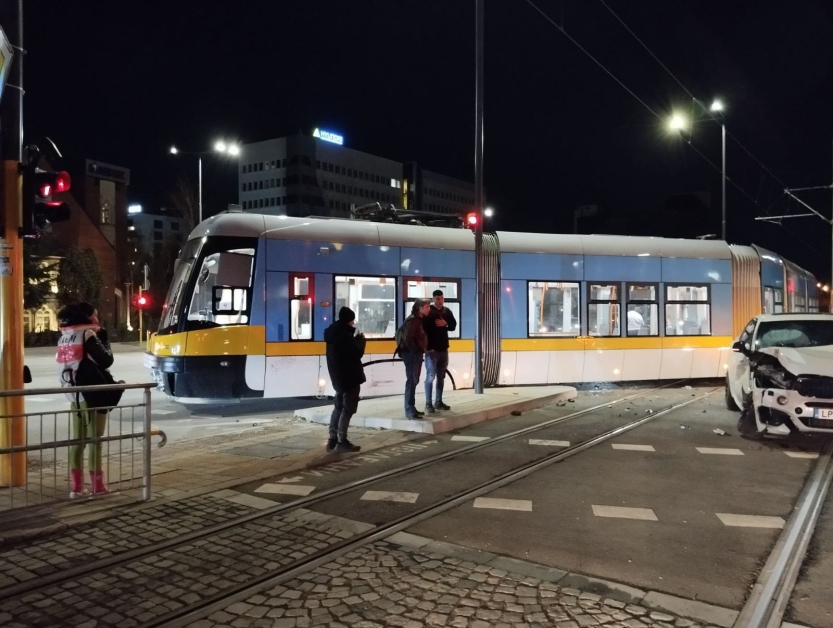 Тежка катастрофа между трамвай и кола в столицата СНИМКИ