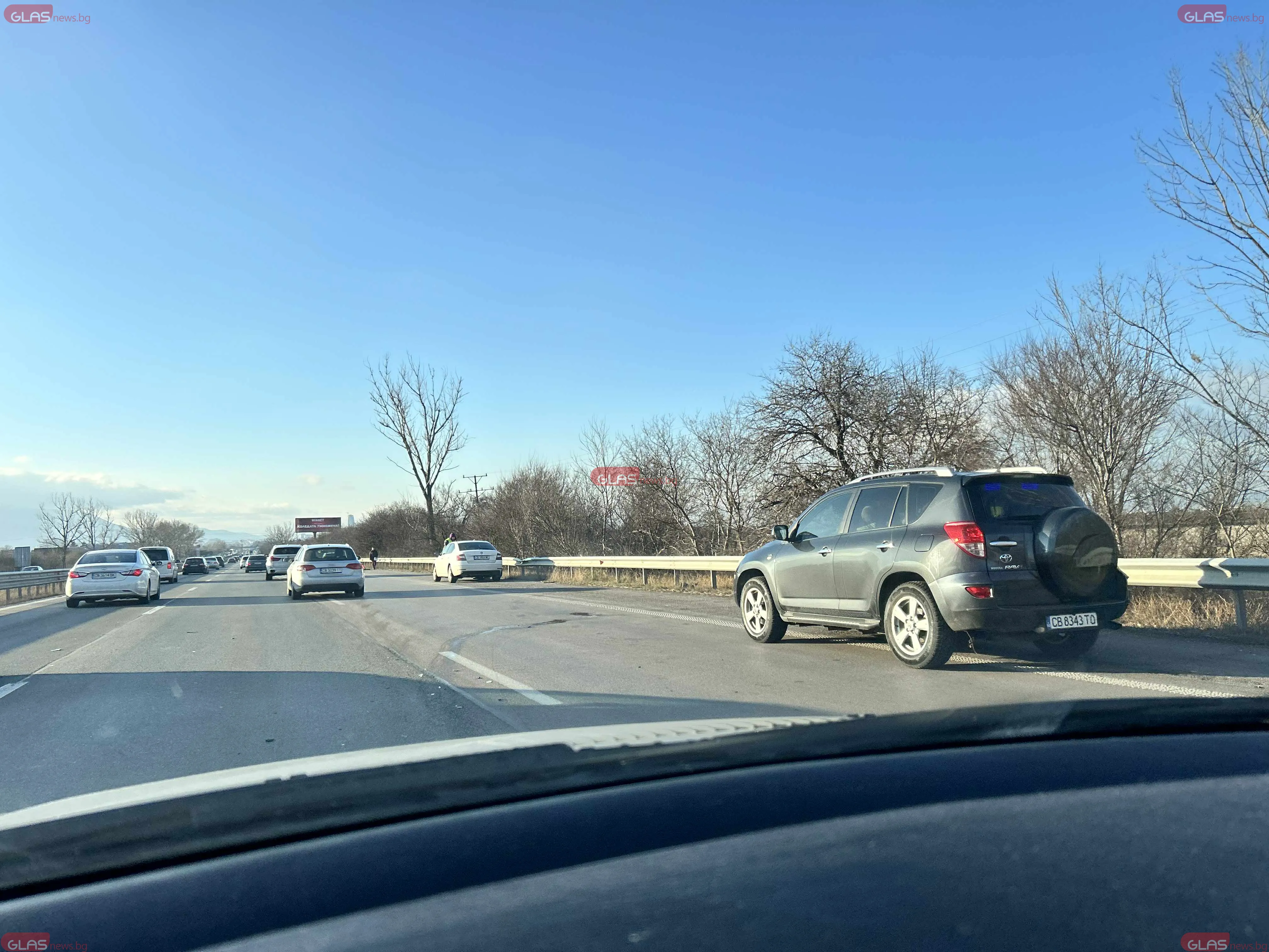 Катастрофа и задръстване на АМ Тракия СНИМКИ