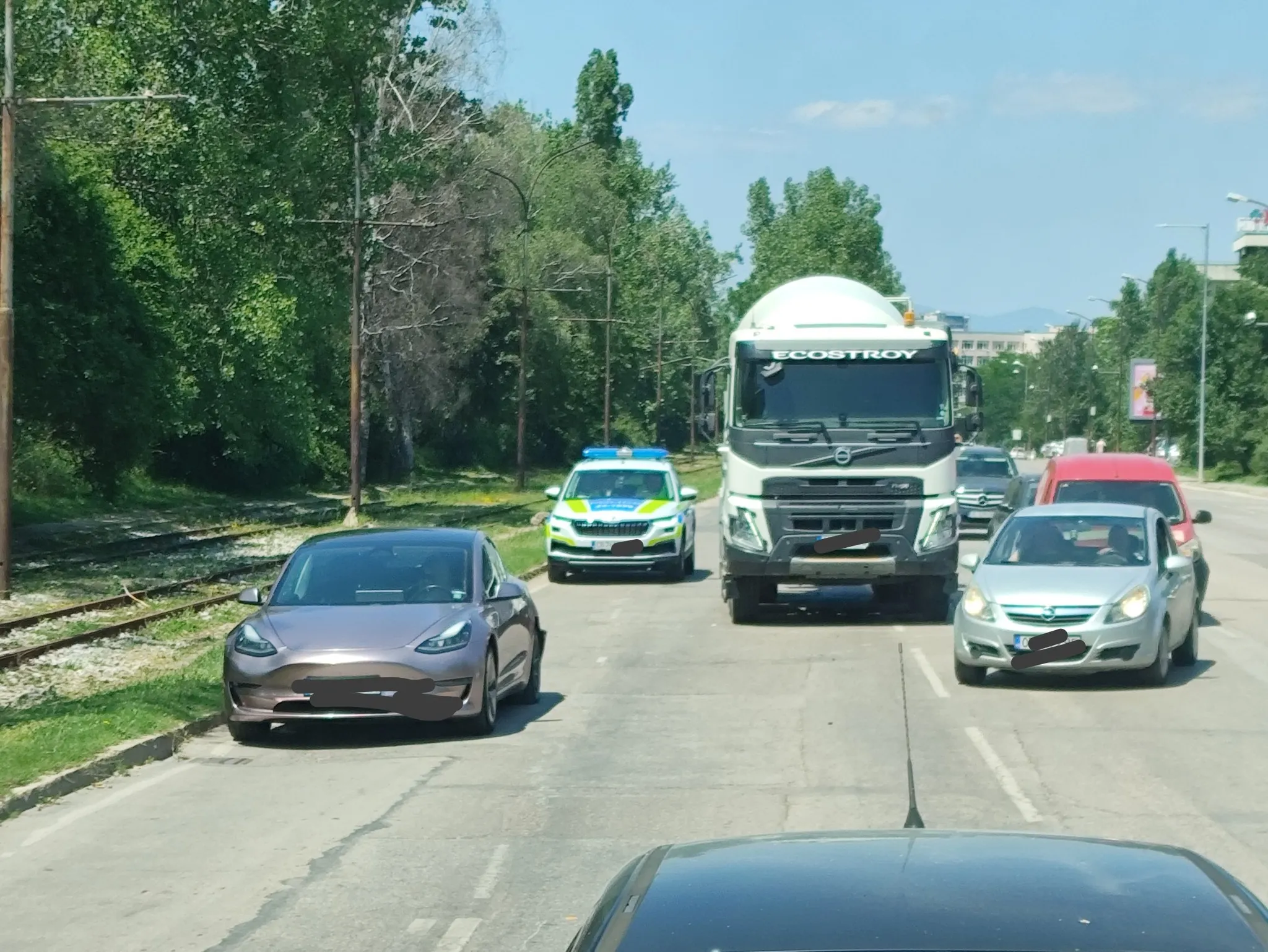 Катастрофа сред бетоновоз и електромобил Тесла е станала преди минути на столичния бул. " Св. Климент Охридски " в региона след Лесотехническия университет в посока Студентски град.