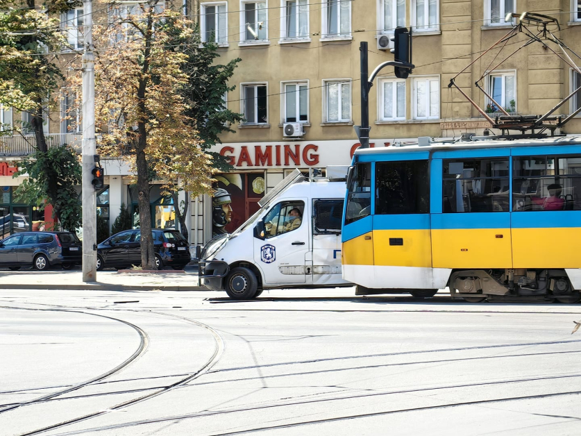 Катастрофа сред бус на полицията и трамвай, движещ се по линия №12, това видя Glasnews.bg в обществената мрежа Фейсбук. Инцидентът е станал на бул. " Мария Луиза " и улица " Козлодуй " в столицата.