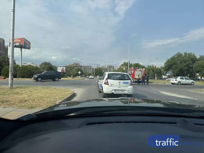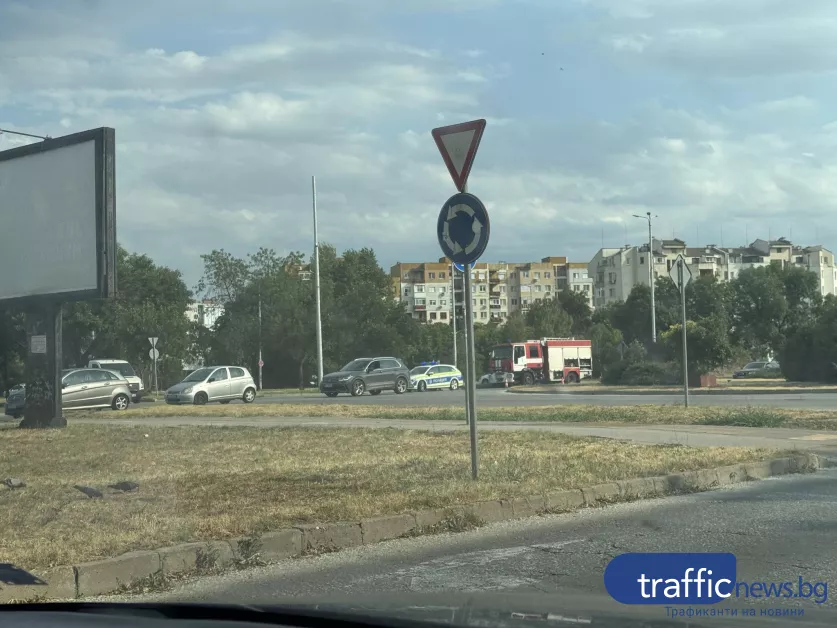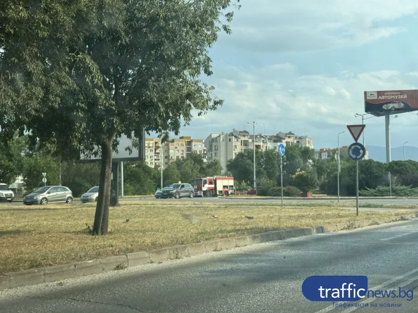 Катастрофа между джип и пожарна на кръгово кръстовище в „Тракия"