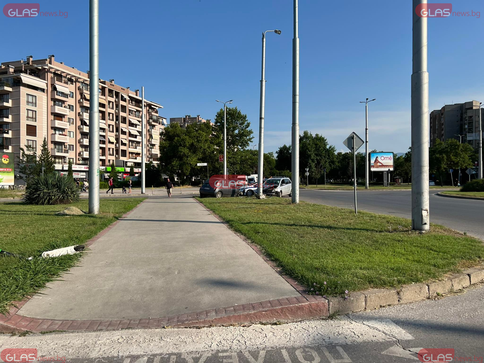 Катастрофа сред два автомобила е станала на кръговото кръстовище сред бул. " Освобождение " и ул. " Княз Борис " в пловдивския квартал " Тракия ".