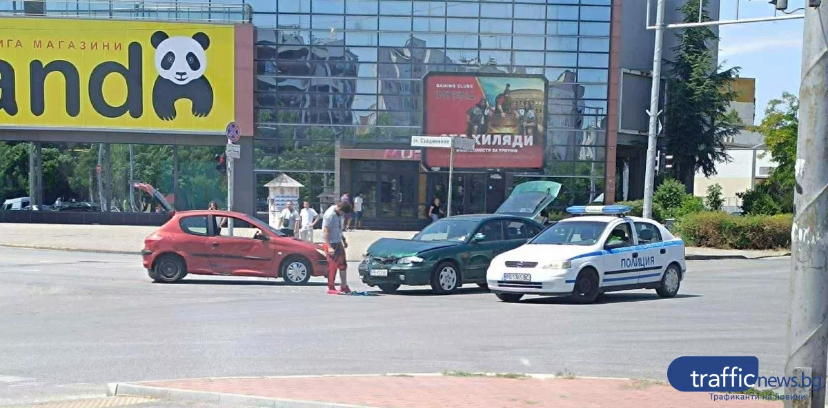 Два автомобила се сблъскаха на оживен булевард в Тракия СНИМКИ