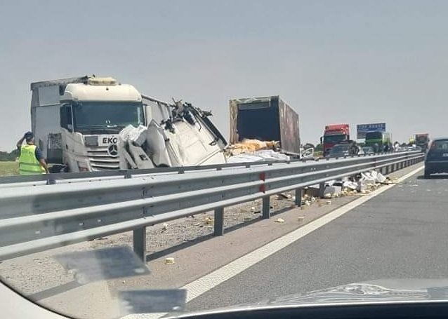 Катастрофа сред два тежкотоварни автомобила лимитира придвижването при 159-и километър на автомагистрала " Тракия ", оповестиха от Областната дирекция на Министерство на вътрешните работи в Стара Загора. Инцидентът е станал в платното в посока София, няма тежко потърпевши.