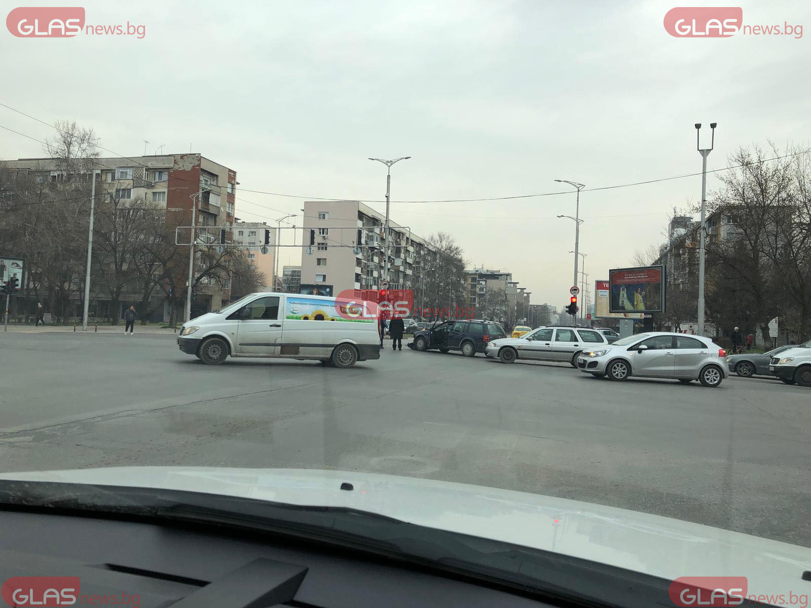 Две коли се блъснаха на натоварено кръстовище в Пловдив СНИМКИ