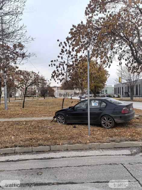 От конфликта единият автомобил – БМВ, се е завъртял и се е качил в тревните площи на разграничителния остров.