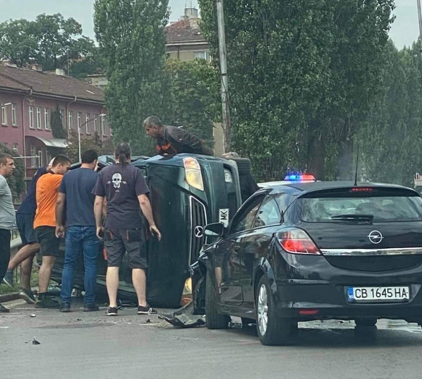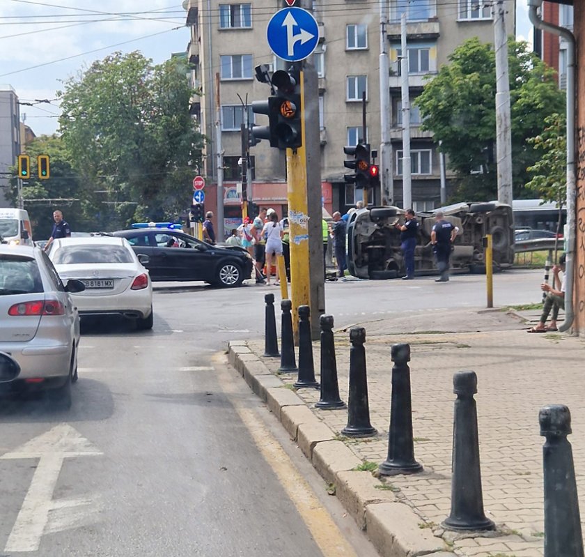 Зрелище: Кола се обърна в центъра на София