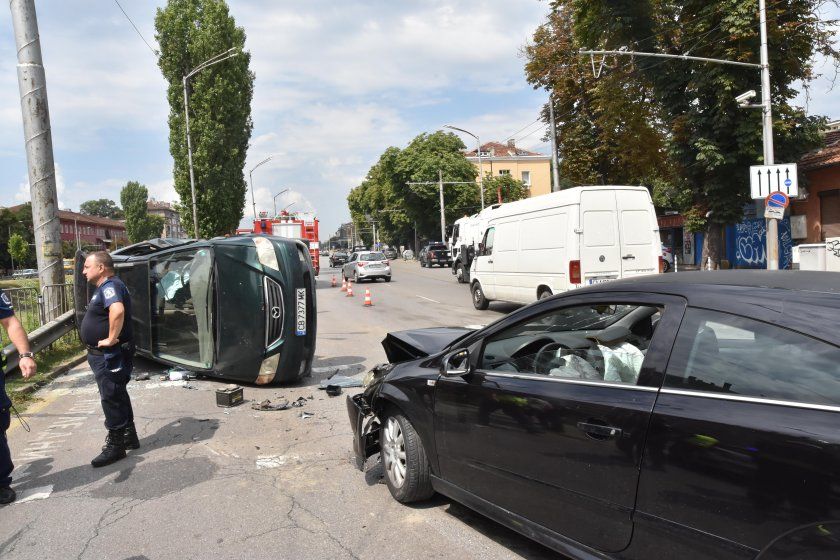 Катастрофа сред две коли на светофара на ул. “Г. С. Раковски “ и бул. „ Сливница “, снима Булфото.