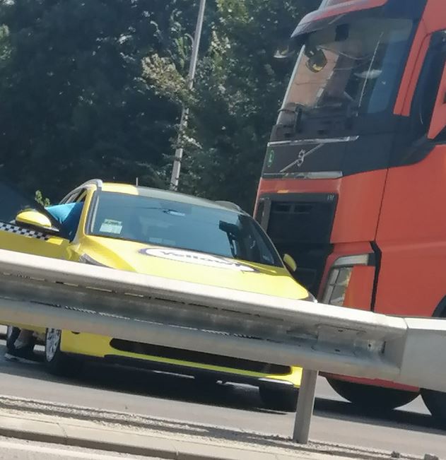 Тежкотоварното возило се е блъснало в таксиметров автомобил в квартал „ Люлин “ на светофара на бул. „ Сливница “ с „ Кукуш “.