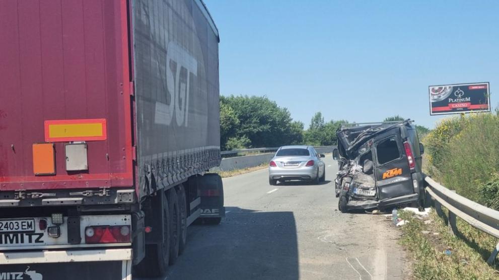 Катастрофа сред ТИР и микробус затвори п ътя от Поморие за Бургас.