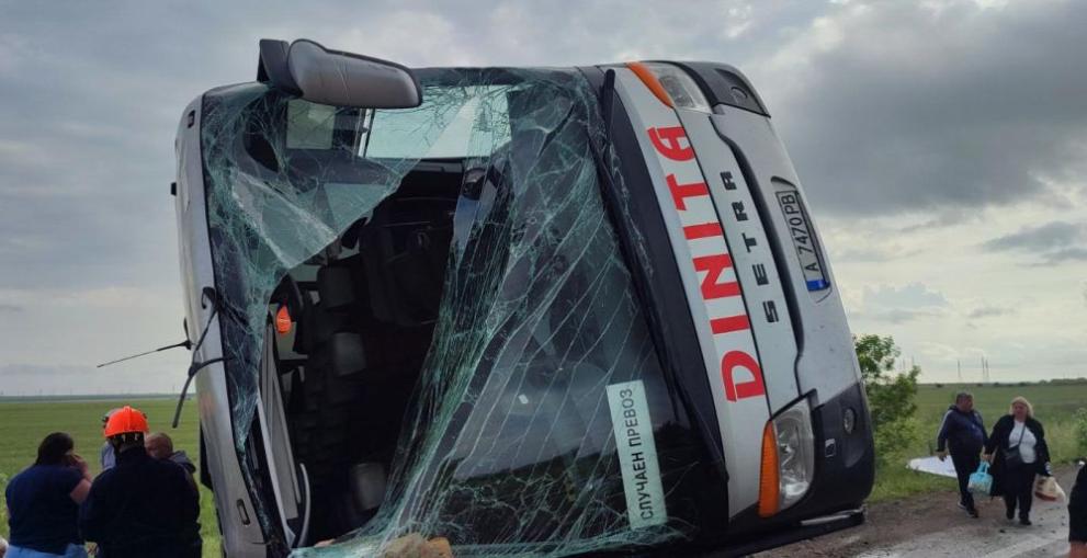Булфото По първични данни към болнични заведения са откарани 12 пасажери, пет от които в по-тежко положение . Водачът на рейса е тестван за приложимост на алкохол. Пробата е била негативна. Към момента за придвижване е затворена дясната пътна лента от автомагистралата.