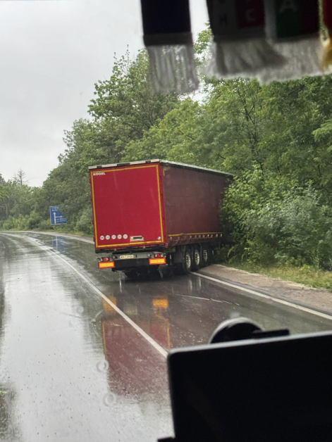 Шофьори алармираха в мрежата за произшествието. От споделени фотоси се вижда по какъв начин транспортното средство е излязло отвън пътя.