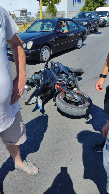 Според очевидци на моториста му е било отнето преимуществото. Преди минути колата за спешна помощ потегли със сирени от мястото, откакто медиците превързаха главата на потърпевшия. Карат го към Окръжна болница, споделиха другари на Денис, който е от Монтана.