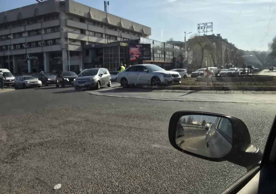 Инцидент! Кола се озова в средата на кръгово в Пловдив СНИМКИ