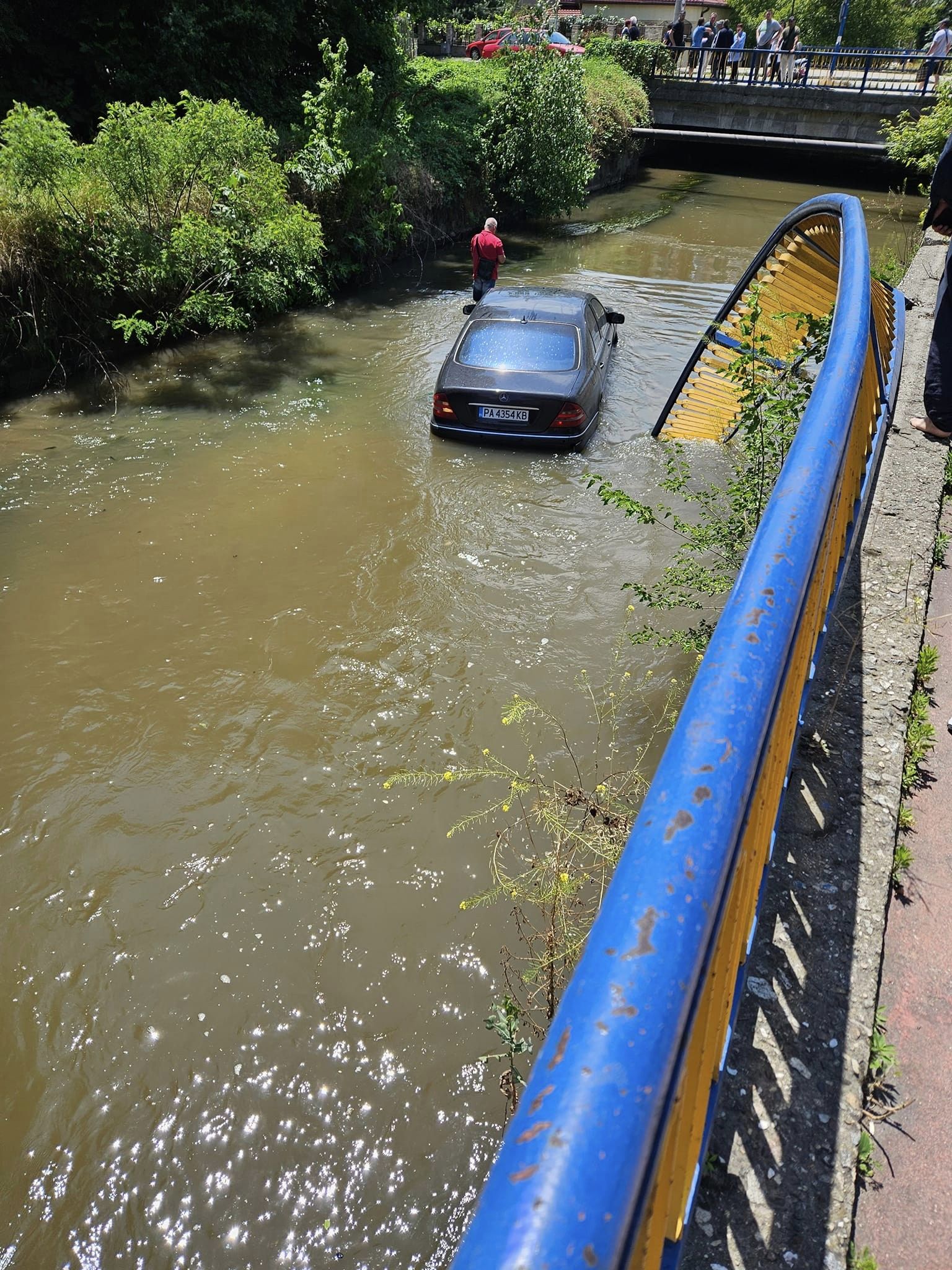 Каскада в Пазарджик - мерцедес падна в канал СНИМКИ