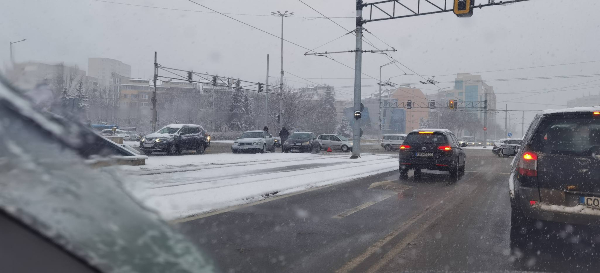 Над София от нощес вали сняг. Улиците са заснежени и хлъзгави.