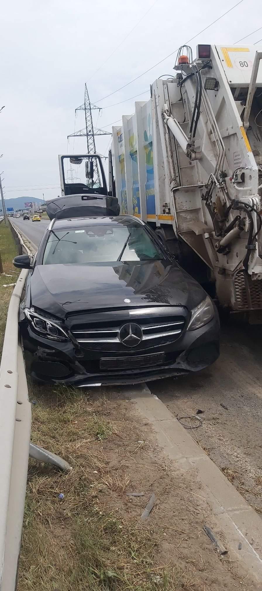 Боклукчийски камион и мерцедес се блъснаха на столичното Околовръстно СНИМКИ