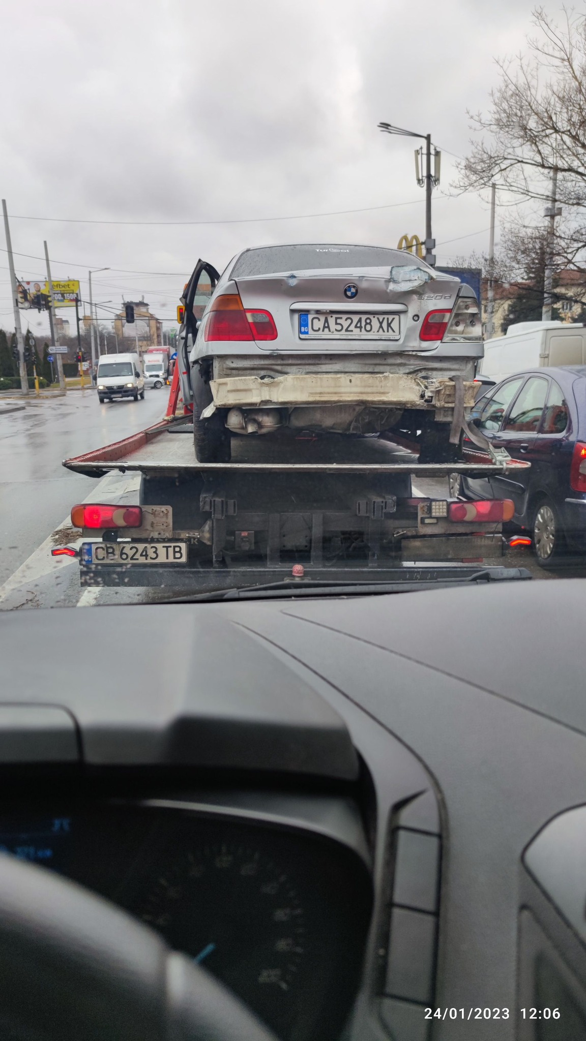 Катастрофа стана по-рано през днешния ден в София. Лек автомобил „ БМВ “ е излязъл от пътното платно, отнася няколко колчета и се блъска в спирка на градския превоз. Инцидентът е на ул. „ Стефан Стамболов “.