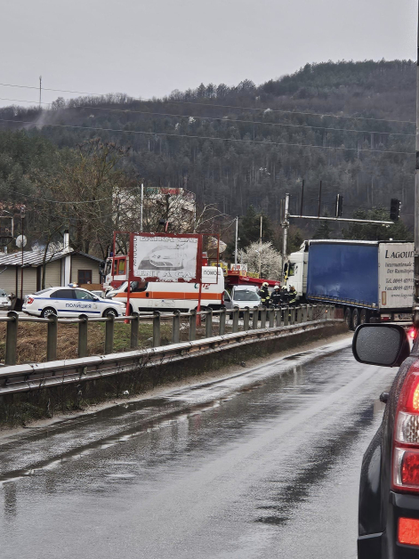 Инцидент с камион и кола в Търново, пожарна и линейка са на мястото СНИМКИ