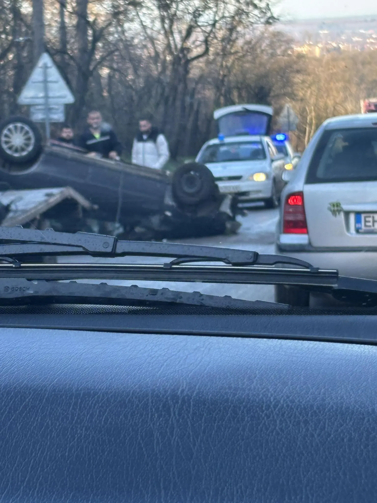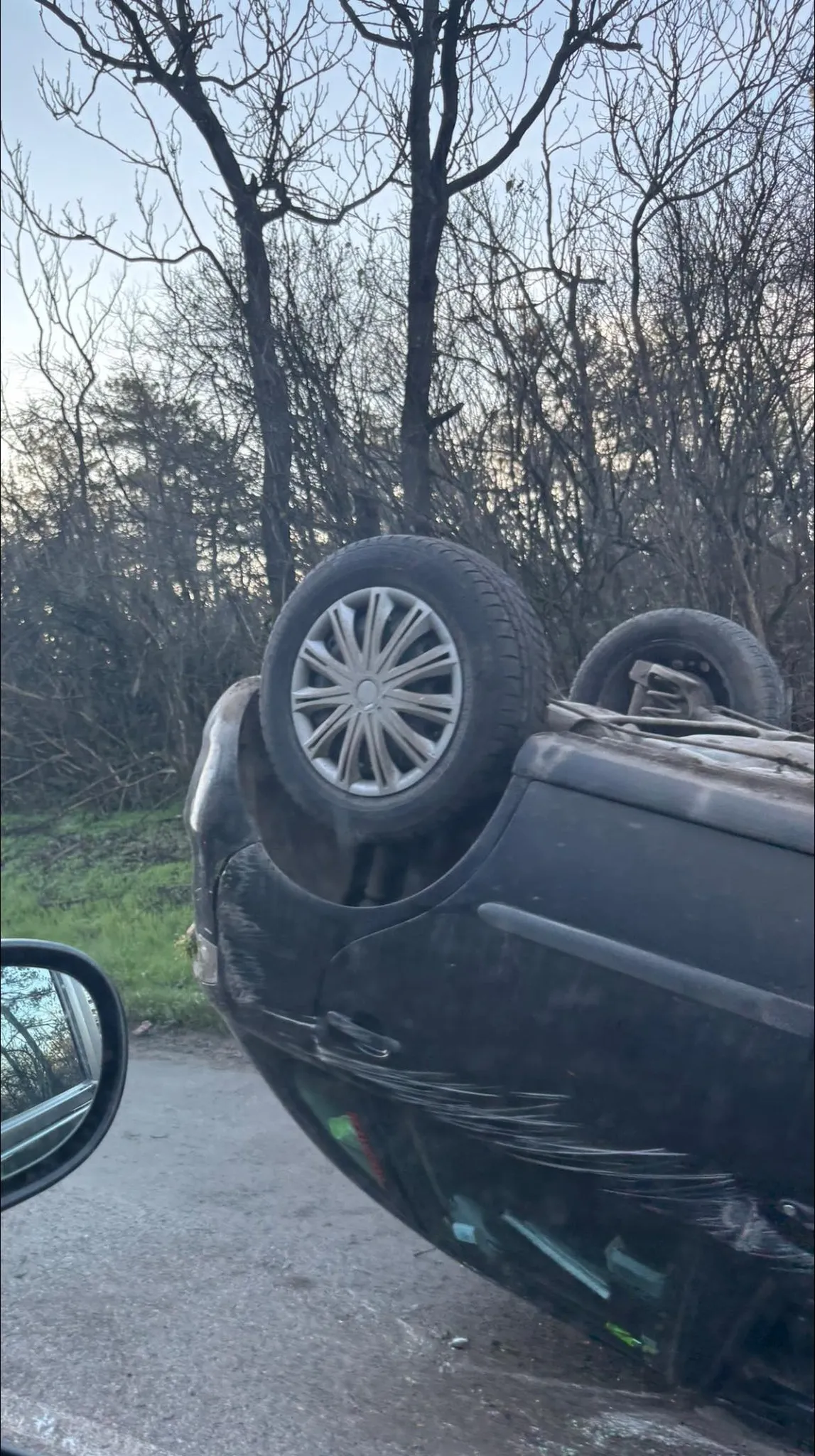 Лек автомобил се е обърнал по таван на пътя от Бяла Слатина посока Кнежа.