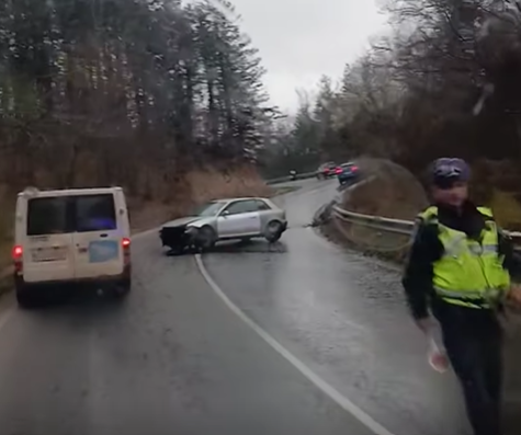Има съществени материални вреди по предницата на возилото. На мястото е дошъл полицейски екип. Движението все още не е спряно, само че се прави единствено в едното платно.