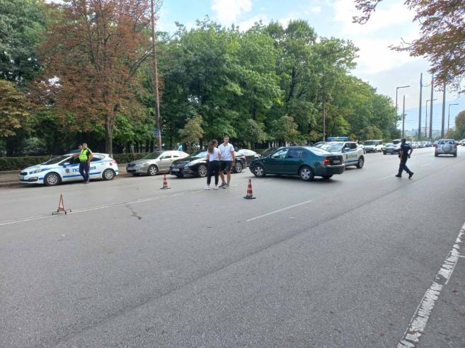 Към момента придвижването на бул. " Витоша " се контролира от полицейски автомобил и е затруднено.