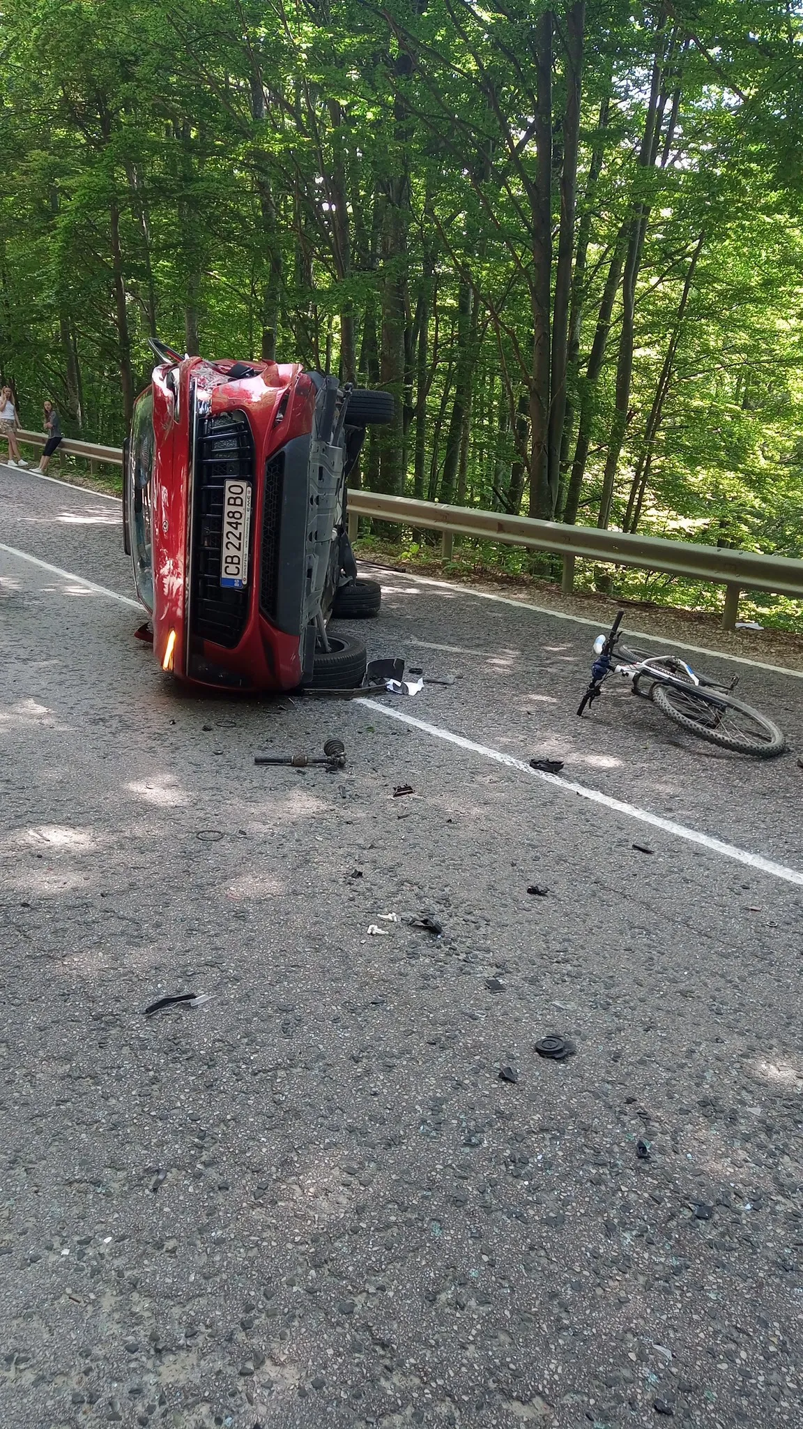 По данни от очевидци, лидер на лек автомобил „ Мазда “, е карал с висока скорост и е правил рискови изпреварвания в завоите, когато се е блъснал челно в „ Фолксваген Пасат “. Има съществени материални вреди по колите, като едната се е преобърнала на една страна.