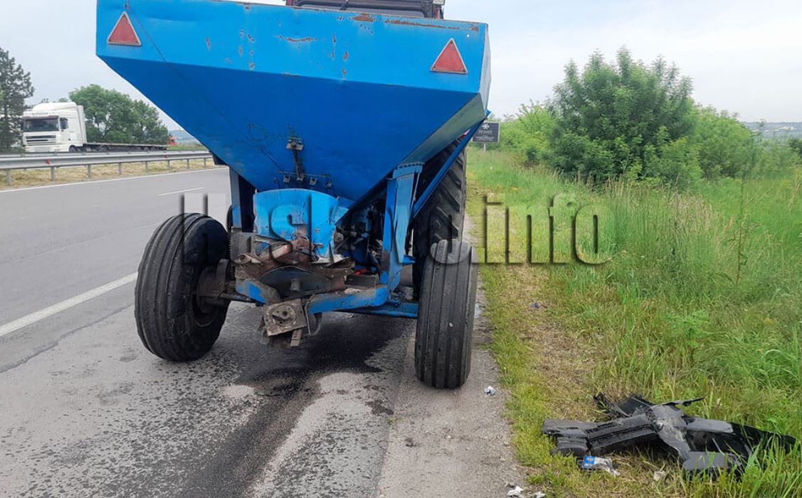Джипът с марка Тойота се е блъснал в прикачения инвентар на селскостопанската машина. Вероятно водачът се е разсеял. При удара леката кола е с много материални вреди, няма потърпевши хора, заяви haskovo.info.