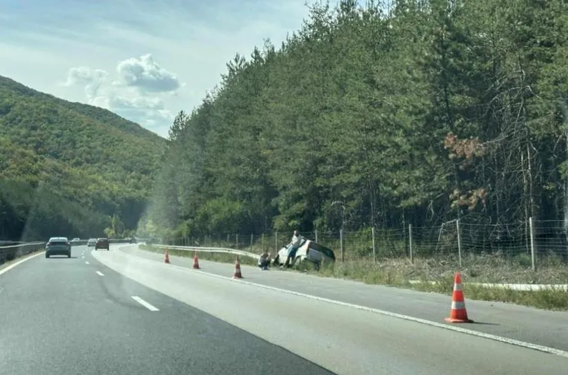 Катастрофа на АМ Хемус, кола е в канавката СНИМКА