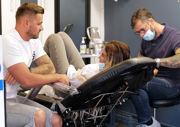 Бившият модел, който през годините беше обвързван с куп футболни звезди и предприемачът бяха изловени от бдителни папарави в студио за татуси в Есекс, където започнаха да вършат мастилените рисунки по телата си, само че това ще отнеме няколко седмици, с цел да бъдат зашършени.