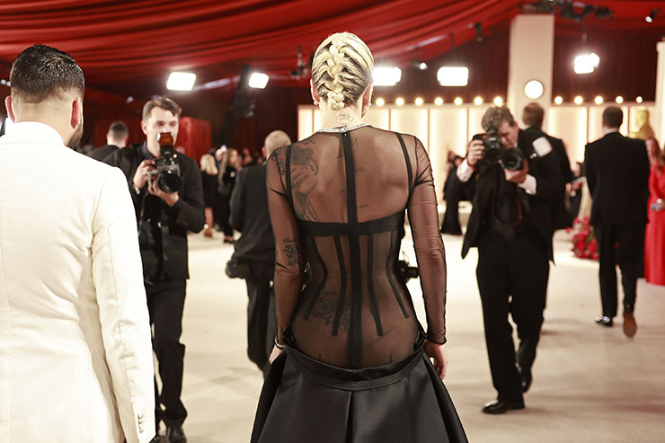 Като същинска Пепеляшка се появи Лейди Гага в нощта на Оскарите, само че за разлика от приказката, този път събитията се случиха в противоположен ред.Първо Лейди Гага бе с една от най-впечатляващите рокли, пристигайки на церемонията и позирайки пред събралите се фотографи. Тя безусловно бе взела от стилния подиум тоалета на Chanel от есенната им сбирка за 2023, който бе показан на ревю в Лос Анджелис единствено преди два дни.