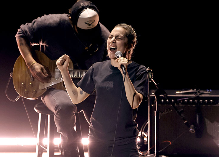 Тя трябваше да излезе на сцената, с цел да извърши песенjd " Hold My Hand " от саундтрака на „ Топ Гън 2 “ и за задачата се появи единствено по скъсани черни дънки и черна тениска.