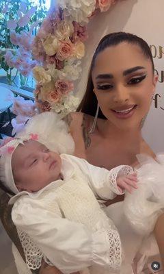 Тунингованата моделка, която бе хваната да кара, надрусана с кокаин, стана майка доскоро повече от 40 дни. Както повелява традицията, след изминаването им провежда охолно празненство за наследничката си.