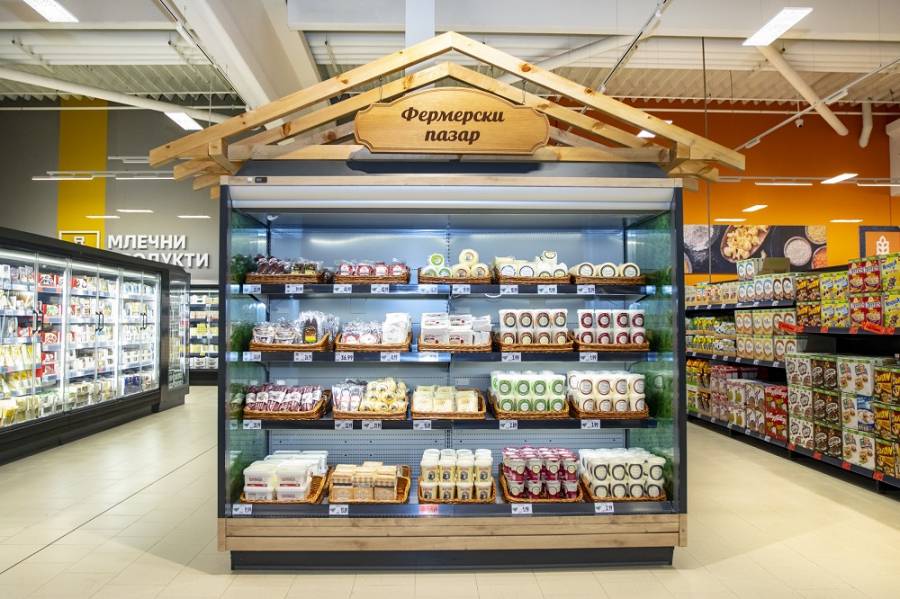 Веригата към този момент обособява особено място на територията на хипермаркетите си, където се предлага продукция на районни зеленчукопроизводители. В допълнение през 2020 година компанията ще усили с 30% производителите , с които подписва контракти за изкупуване на продукцията. По този метод всички те ще работят умерено, с фокус върху качеството на продукцията си, вместо непрестанно търсене на пазар. Един от образците, че този принцип работи, е зеленчукопроизводител от Първомай, който през 2019 година осъществя продажба на общо 2500 тона продукция в обектите на веригата. Общо за миналата година веригата е продала 35 милиона кг български плодове и зеленчуци .